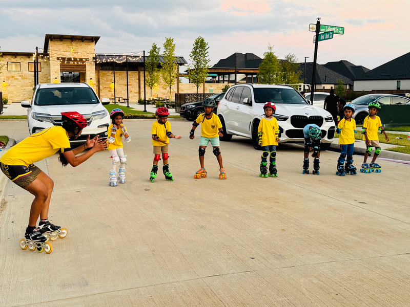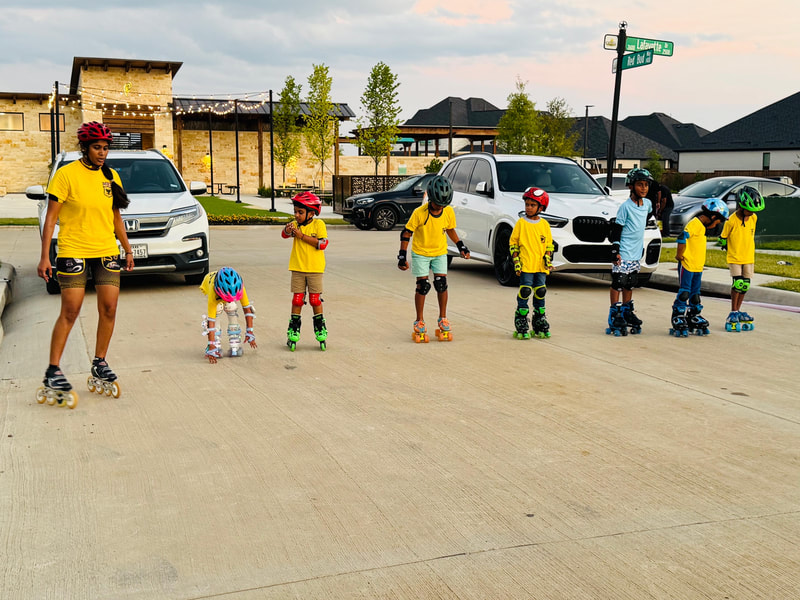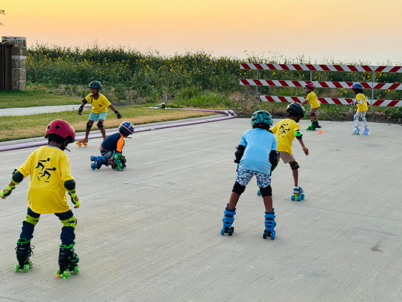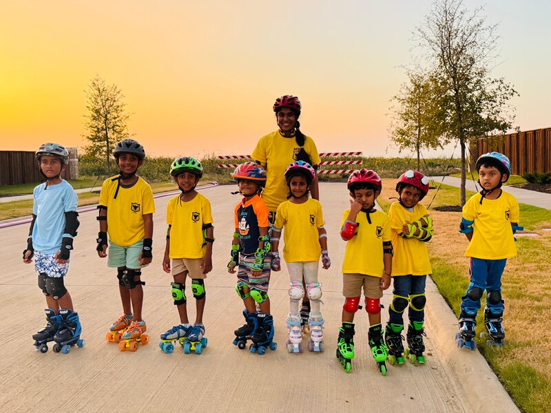 Saba Attluri (Head Coach Team MRT Celina, TX) with her skaters during outdoor practice session